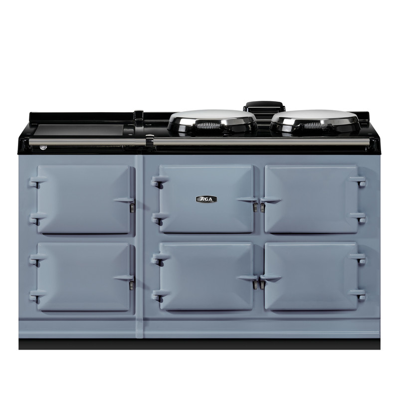 AGA Dual Control 150 Dual Fuel with Warming Plate Dove with Stainless Steel trim