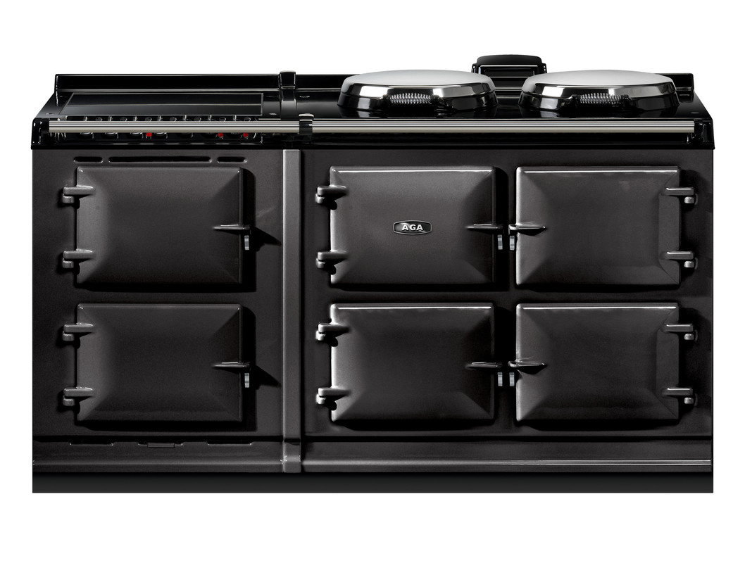 The AGA eR7 160 offers three cast-iron heat storage ovens – for roasting, baking and simmering – and two hotplates which are controlled by a touch-screen control panel. Hotplates and ovens can be individually controlled, operated independently, and for optimal control, there are 5 heat settings for the roasting oven and 4 for the baking oven.