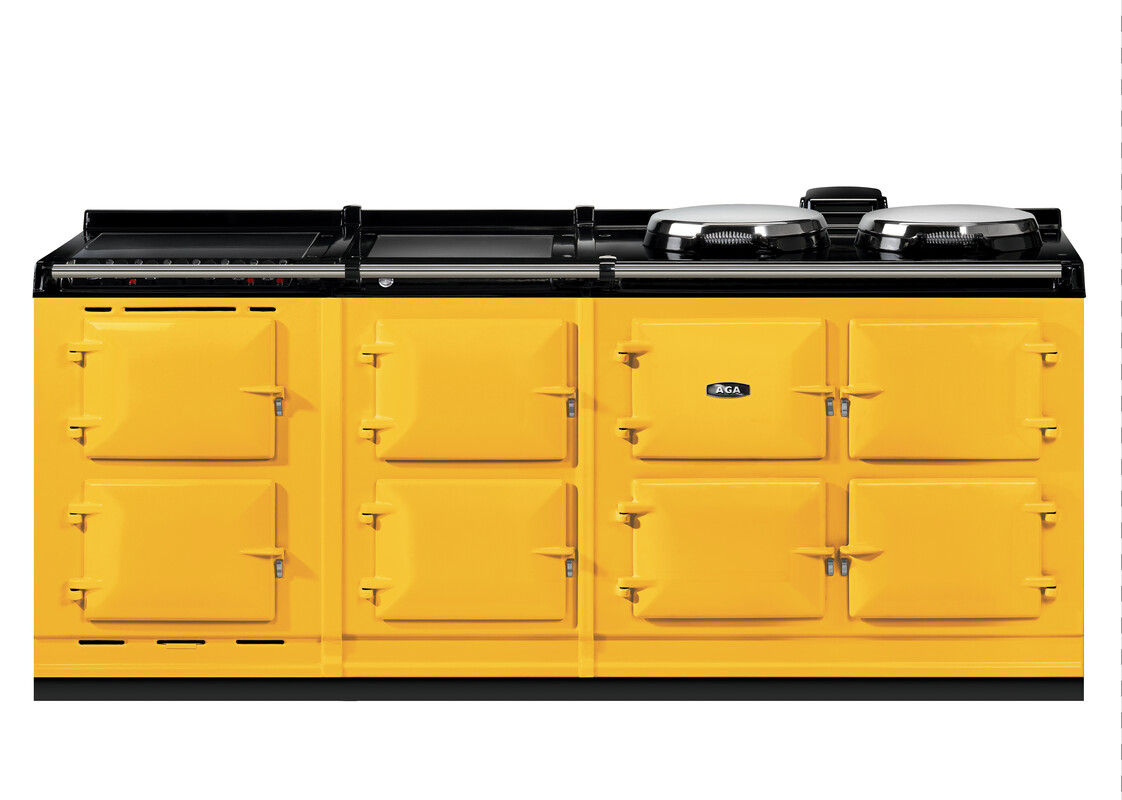 AGA R7 Series 210 Electric with Warming Plate + Ceramic Hob Mustard with Stainless Steel trim